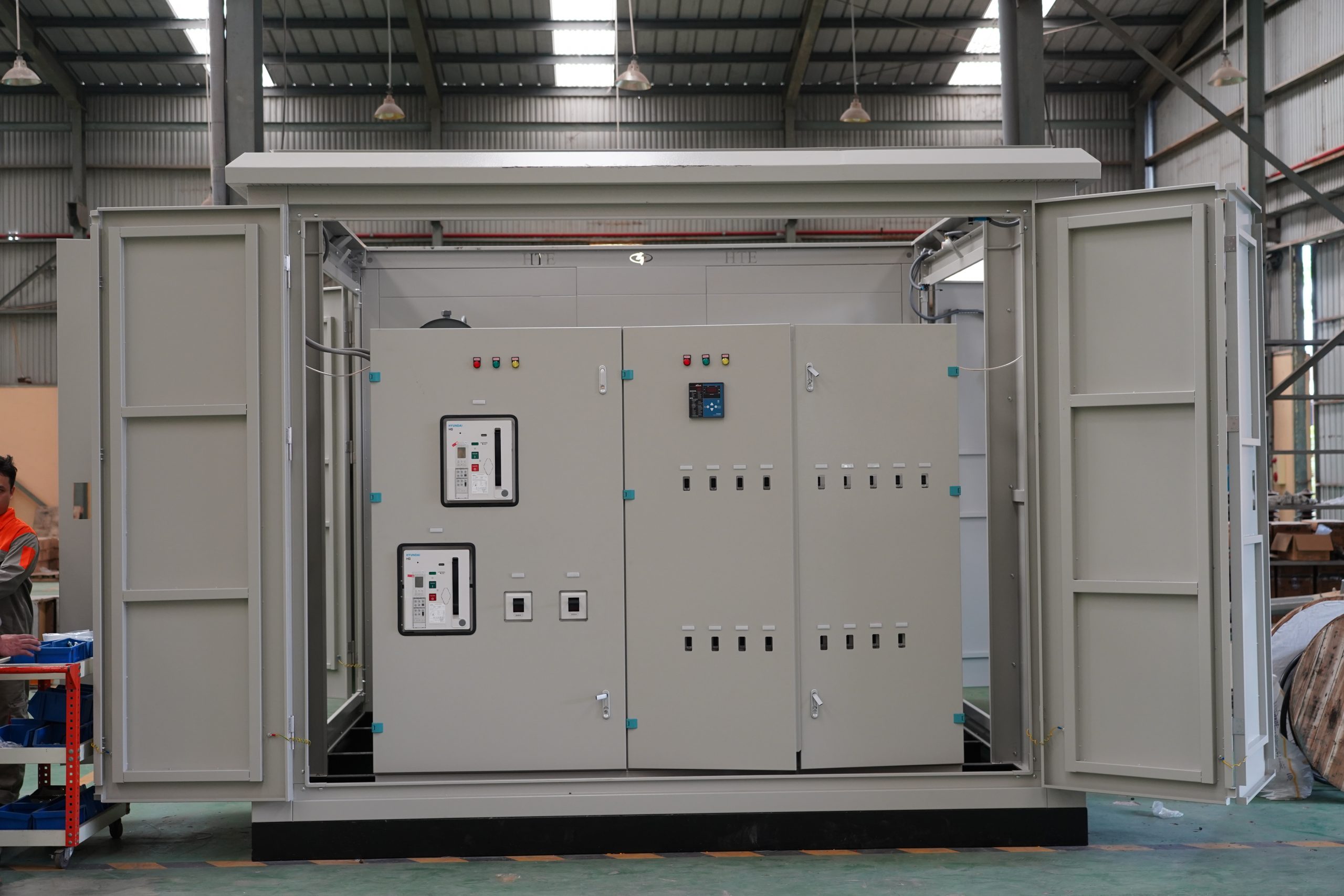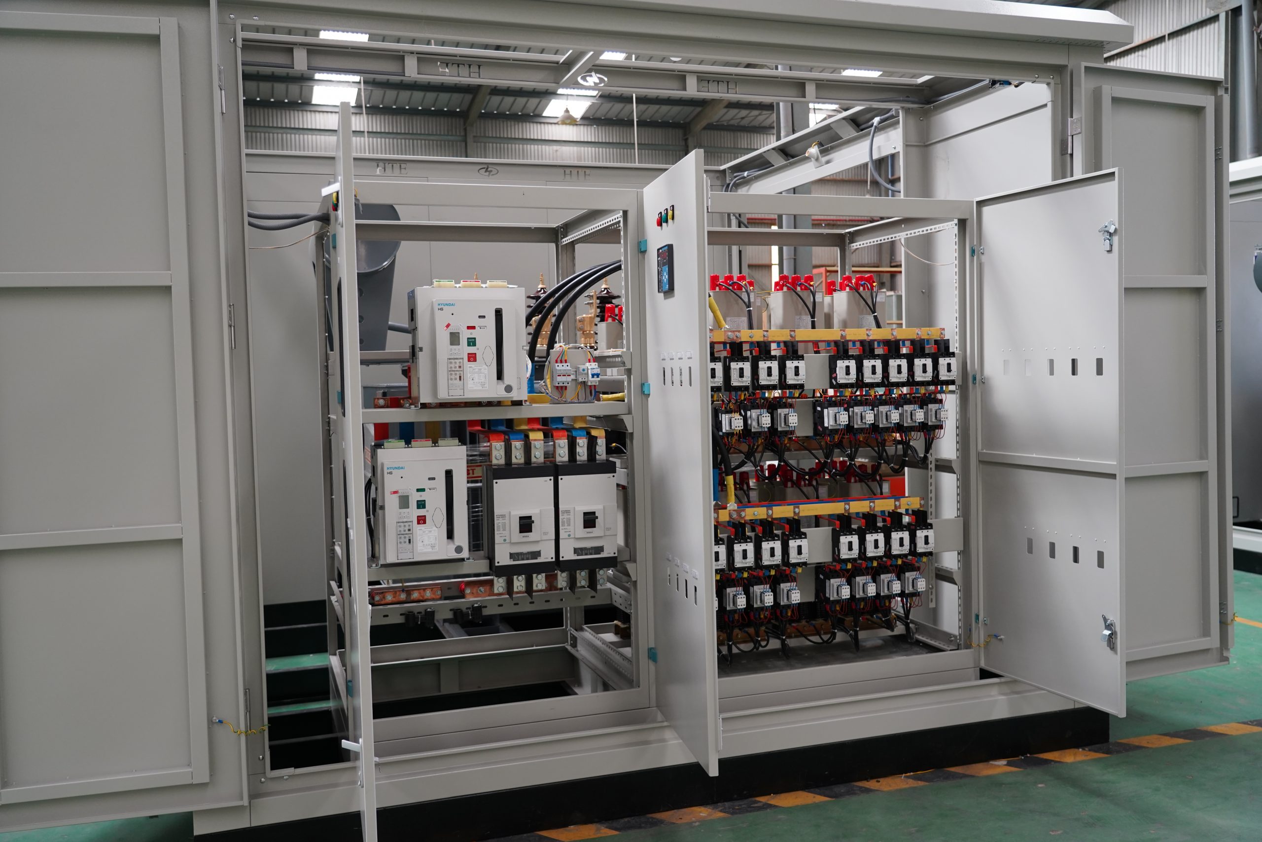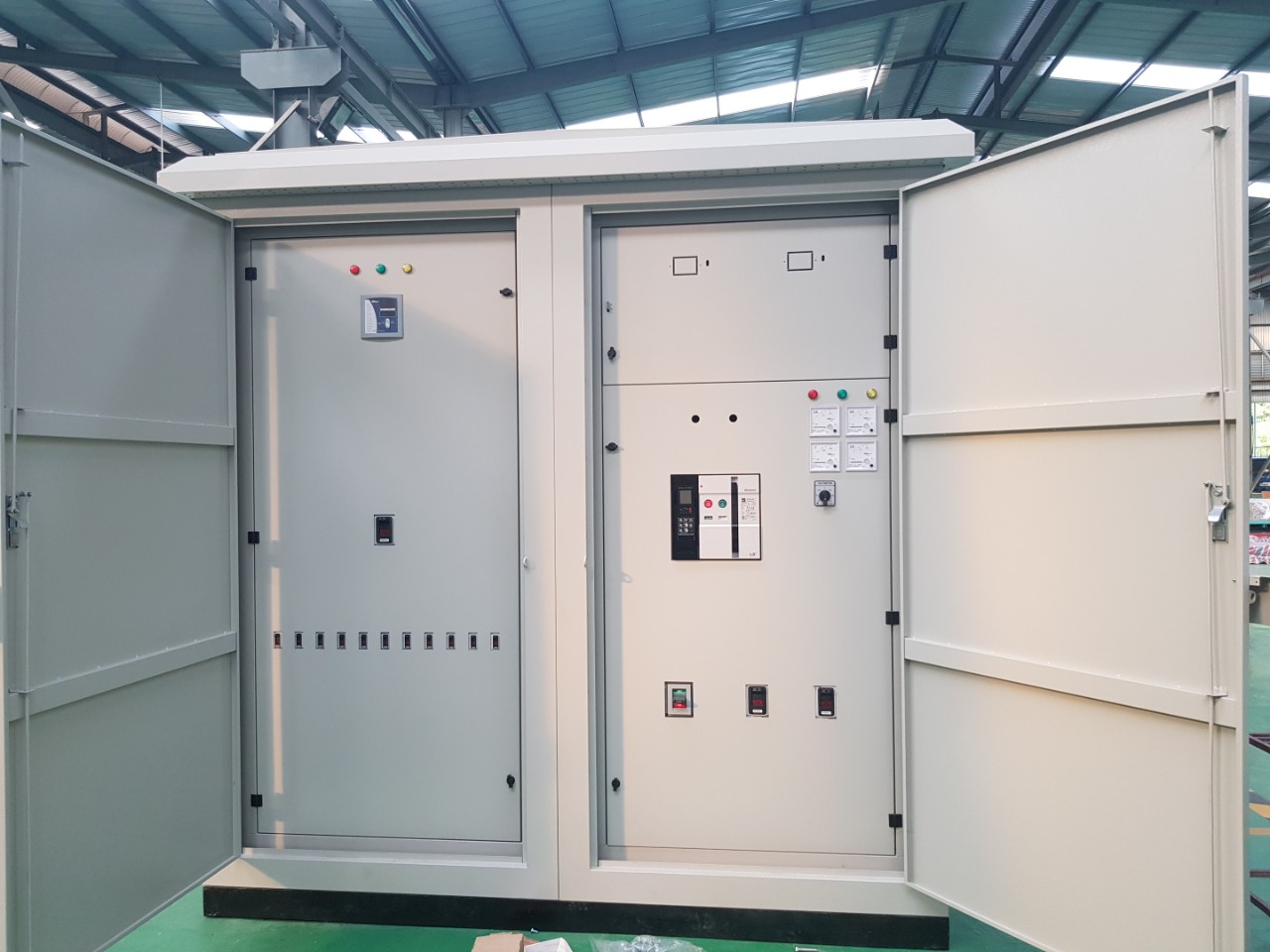 Máy biến áp dầu hoặc khô, dung lượng 250kVA – 2500kVA, tổn hao thấp, vận hành ổn định. |