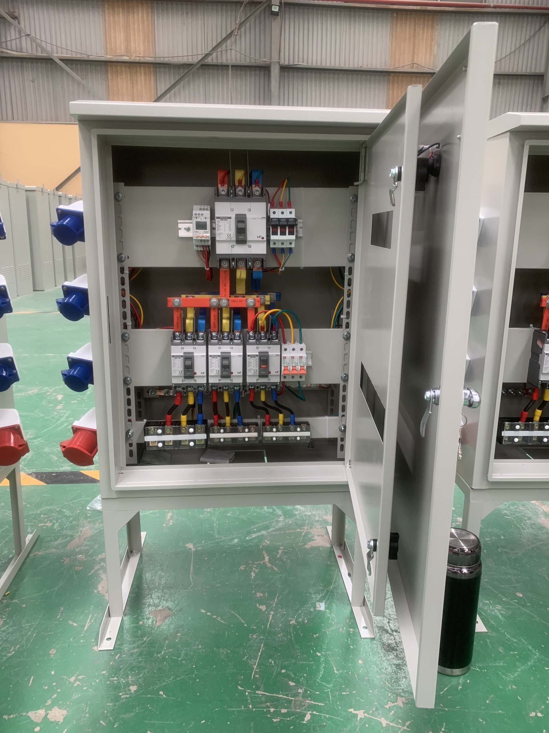 Tủ được thiết kế tích hợp ổ cắm công nghiệp 1 pha – 3 pha, đảm bảo an toàn, linh hoạt và thuận tiện trong quá trình sử dụng điện khi thi công.